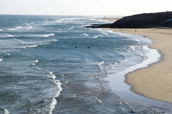 Fuerteventura heißt übersetzt „starker Wind“ und so ist es nicht verwunderlich, dass hier sowohl Wellenreiter, Wind- als auch Kitesurfer die Insel unsicher machen. Die ersten Kitestunden habe auch ich hinter mir - allerdings werden da noch ein paar dazukommen müssen, um mit den „großen Jungs“ die Küste hoch und runter rasen zu können.