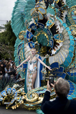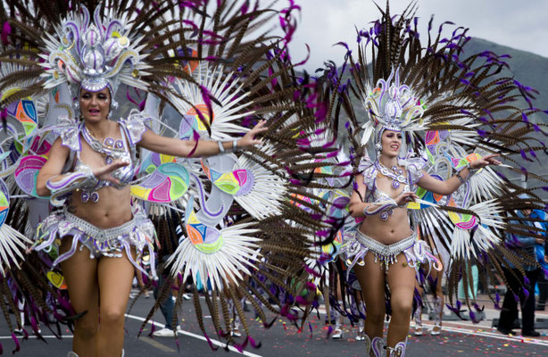 Ende Februar war ja auch noch Karneval - tataaaa! Ein ziemliches Spektakel haben die Tenerifos (?) oder sagt man Teneriffianer (?) hier abgefeuert. In Santa Cruz herrschte zumindest Ausnahmezustand. Immerhin soll das hier der zweitgrößte Straßenkarneval nach Rio de Janeiro sein. Und wenn man denkt, dass an Aschermittwoch alles vorbei ist, da die heilige Sardine von trauernden Karnevalisten hochoffiziell verbrannt wurde, liegt man falsch. Am nächsten Tag machen sie weiter als wäre nichts gewesen. Schmeißen sich in ihre bunten, mehr oder weniger textilfreien Kostüme und ziehen sambatanzend durch die Straßen. Nach etwa zehn Tagen war der Zauber dann schließlich doch vorbei. Zeit ein wenig Schlaf nachzuholen. Nicht weil wir jede Nacht feiernd durch die Straßen gehüpft sind, sondern eher weil die Hauptmeile mit diversen Bühne in direkter Nachbarschaft zur Marina lag.